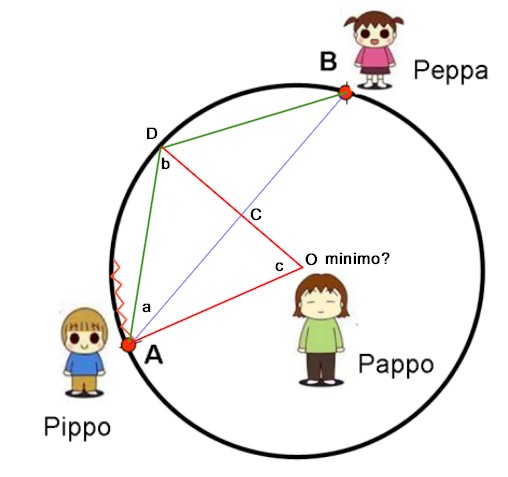 Il percorso di Pappo, che deve muoversi avvicinandosi sempre di più a Peppa , potrebbe essere quello disegnato nella figura ACDB