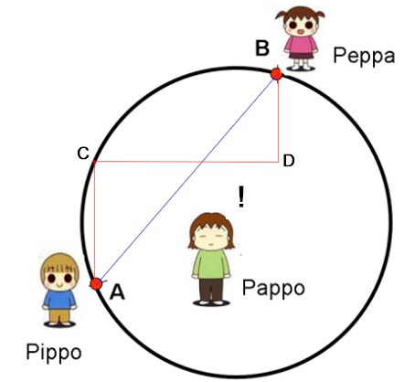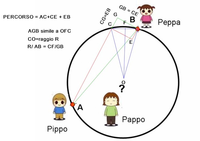 (1) Che tipo di percorso deve fare Pappo per andare da Pippo (A) fino a Peppa (B) per potere calcolare il raggio r ? (rivolta ai teorici)