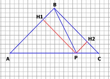 Dato che Area e AB restano uguali al variare della posizione di P sul lato AC, significa che H1P+H2P = costante.
