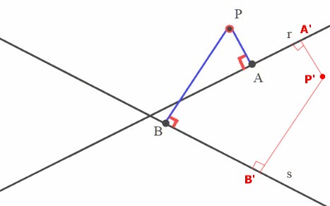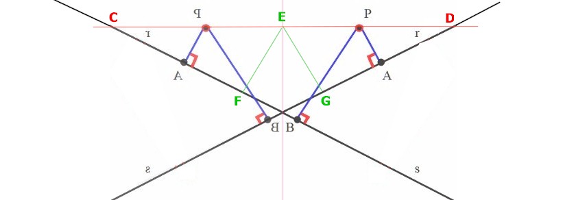 Il punto P e il suo speculare individuano un segmento perpendicolare alla bisettrice tra le rette r e s (EB).