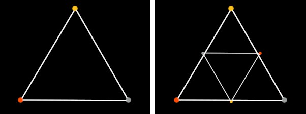 Il procedimento di ripartizione dei triangoli può essere reiterato indefinitamente ottenendo distanze sempre più ridotte tra i punti dello stesso metallo. Procedendo in senso opposto nella tassellatura del piano, ossia costruendo triangoli "attorno a ciascun triangolo" anziché "dentro" di esso, si formano triangoli con lati sempre più grandi, quindi distanza tra i punti sempre maggiori.