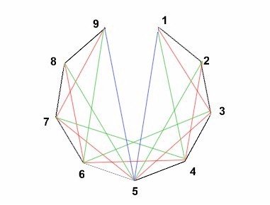 Rappresento i numeri da 1 a 9 come vertici di un ennagono, un grafo di 9 nodi.