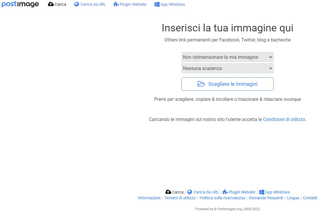 clicca su "scegliere le immagini" e seleziona sul tuo computer l'immagine da caricare.